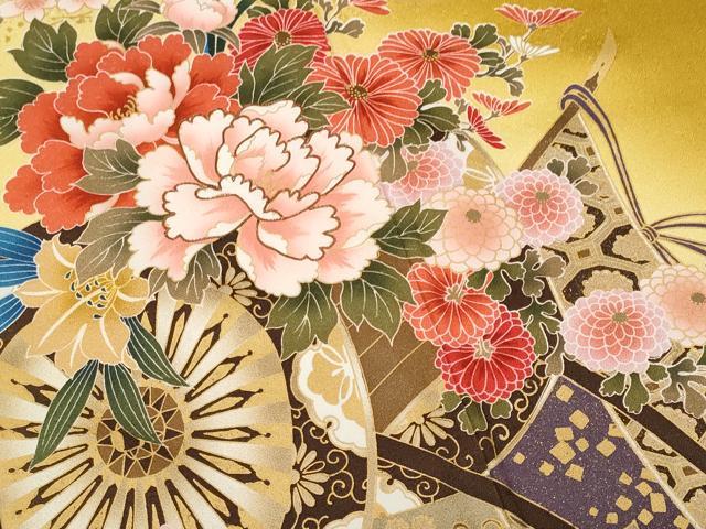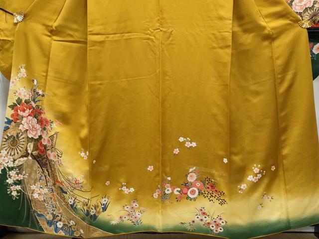 Heiwaya Kimono ■ Luxurious Furisode (long-sleeved kimono) with Komatsu embroidery, flower cart pattern, gold leaf, pure silk, exquisite item CABF6965fb