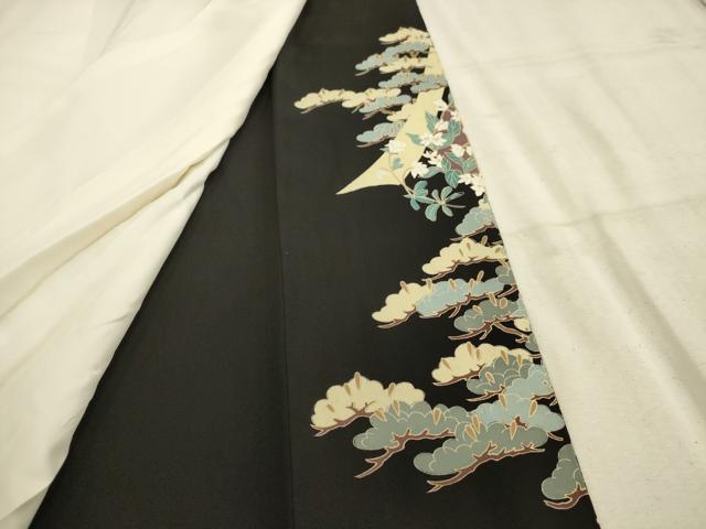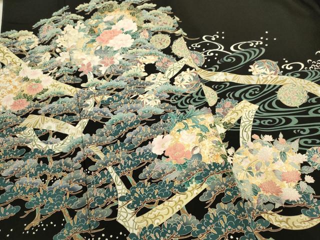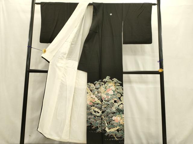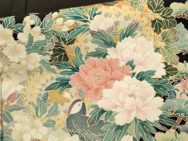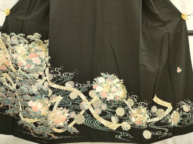 Heiwaya Kimono ■ Gorgeous black formal kimono, artist-made, flowing water, flower and bird design, gold accents, pure silk, exquisite item, AABC7455ma