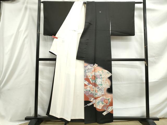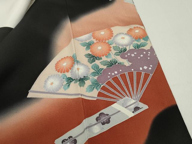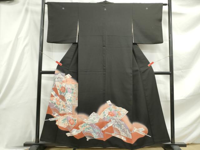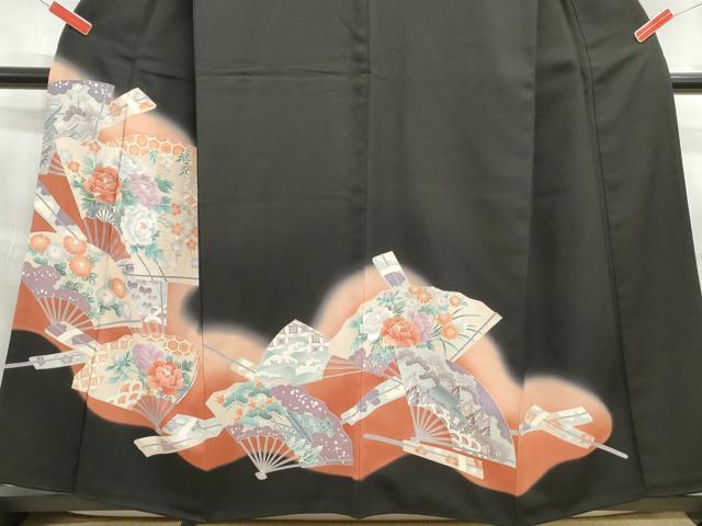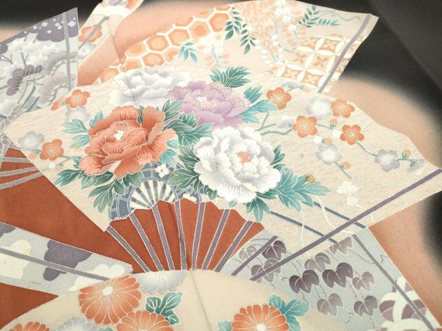 Heiwaya Kimono ■ Luxurious Black Tomesode Kimono, Embroidered, Fan-Shaped Floral Pattern, Gradation Dye, Silver Accents, Pure Silk, Exquisite Item, DABE8841qa