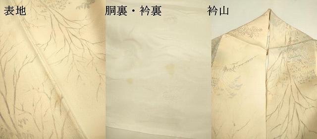 状態は接写画像のように表地所々・胴裏・衿裏・衿山に薄い汚れがございます。