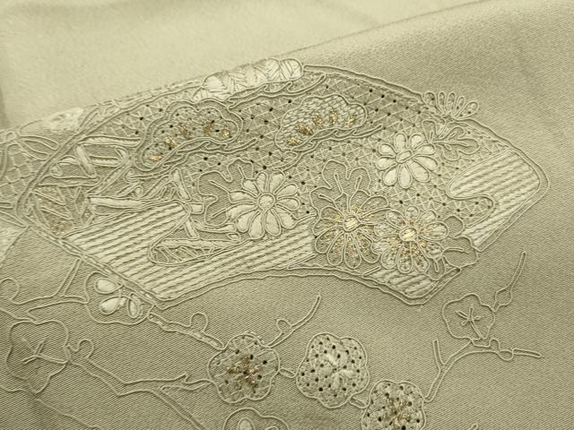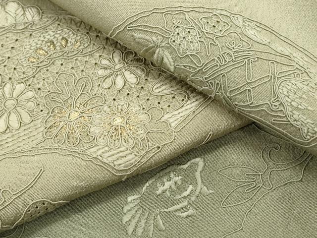 Heiwa-ya Kimono ▼Three Great Chinese Embroideries: Swatow Embroidery, Fully Embroidered, Homongi Kimono, Ground Paper with Floral and Grass Pattern, Gradient Dye, Gold Thread, Pure Silk, Excellent Quality, CAAY0705th