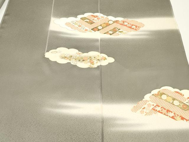 Heiwaya Kimono ▼ Tsukesage (formal kimono fabric), bolt of fabric, Komaburi (embroidered kimono fabric), cloud and floral pattern, gradation dyeing, gold leaf, with lining, excellent quality, unused, DABE6541zy