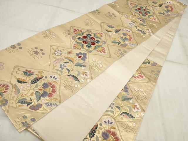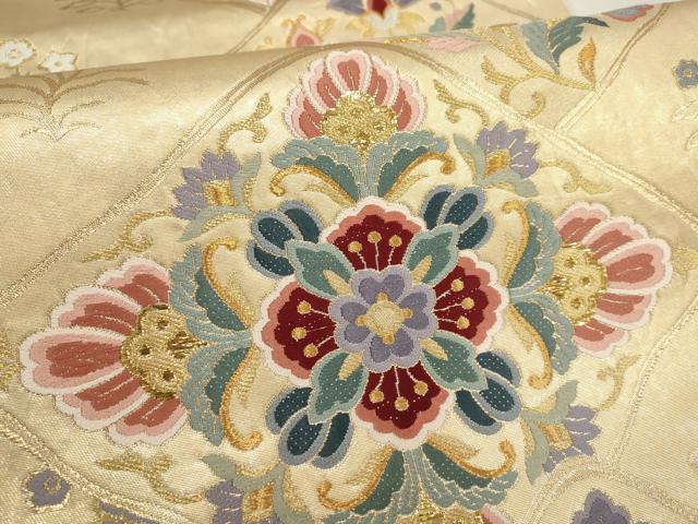 Heiwaya Kimono ▼ Six-panel patterned obi sash ? Colorful floral diamond pattern Gold and silver thread Pure silk Excellent quality AABI3484wj