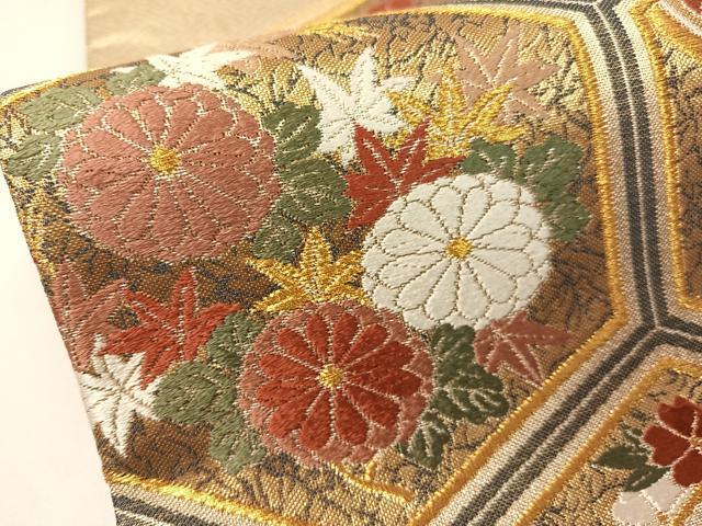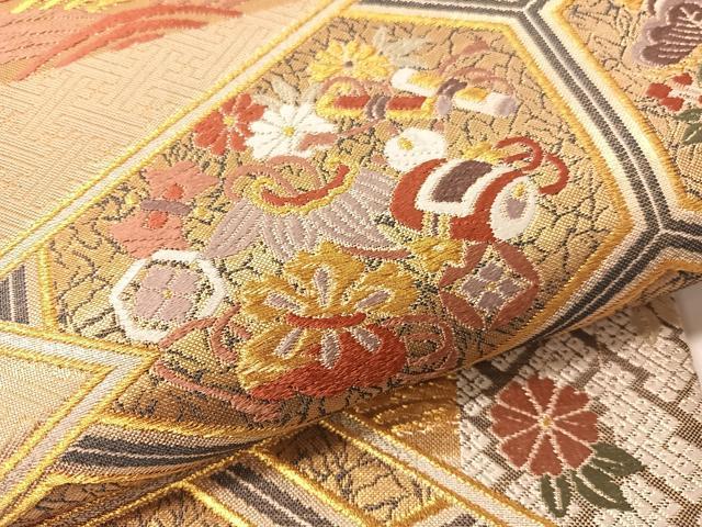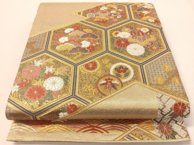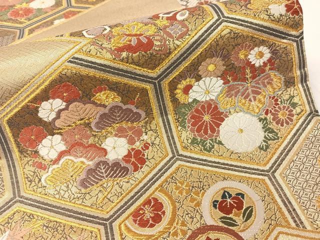 Heiwa-ya Kimono ▼ Six-pass pattern obi, Karaori, pine bark, diamond, tortoiseshell, and flower design, gold and silver thread, pure silk, exquisite item, CAAY7013vp