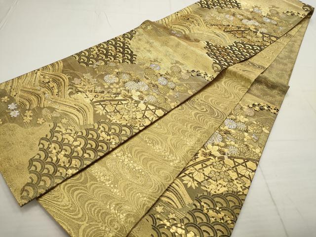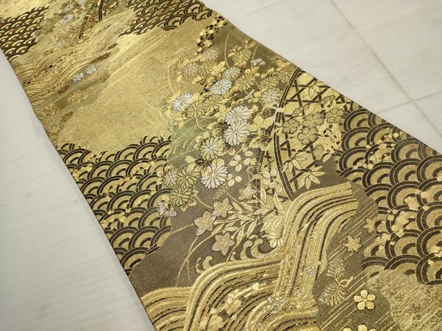 Heiwa-ya Kimono ▼ Six-way Pattern Obi with Flowing Water and Flower Design, Gold and Silver Thread, Pure Silk, Excellent Item AABB9940wj