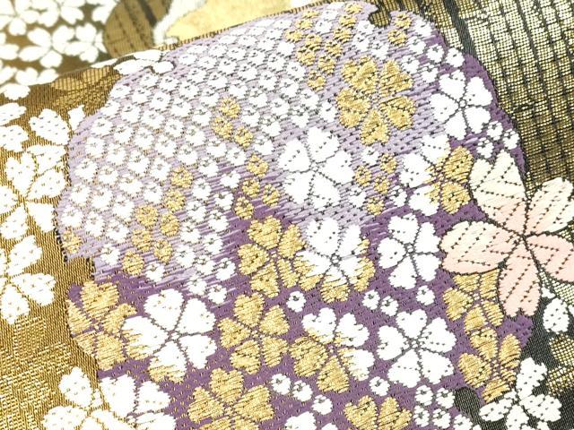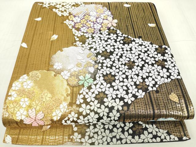 Heiwaya Kimono ▼ Six-panel patterned obi sash, snow-dancing cherry blossom design, gold and silver thread, pure silk, exquisite item, DABE4560az