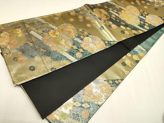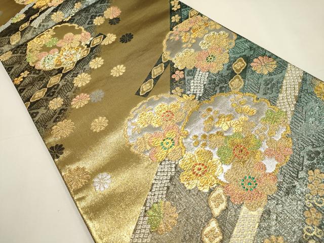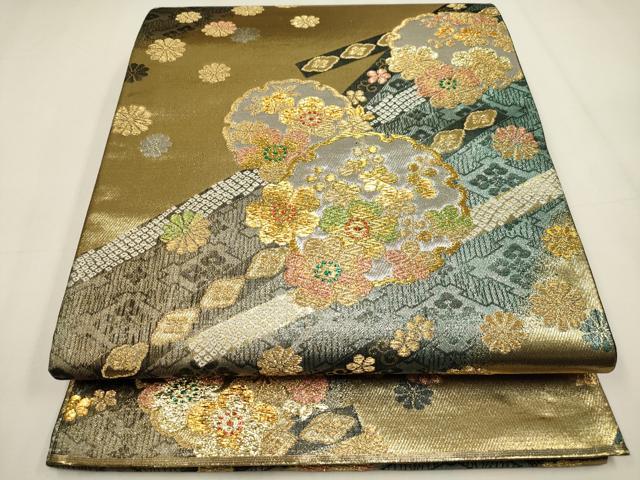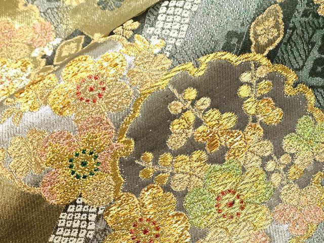 Heiwa-ya Kimono ▼ Six-pass pattern obi with snowflake and flower design, gold and silver thread, pure silk, excellent quality, CAAX8706dy