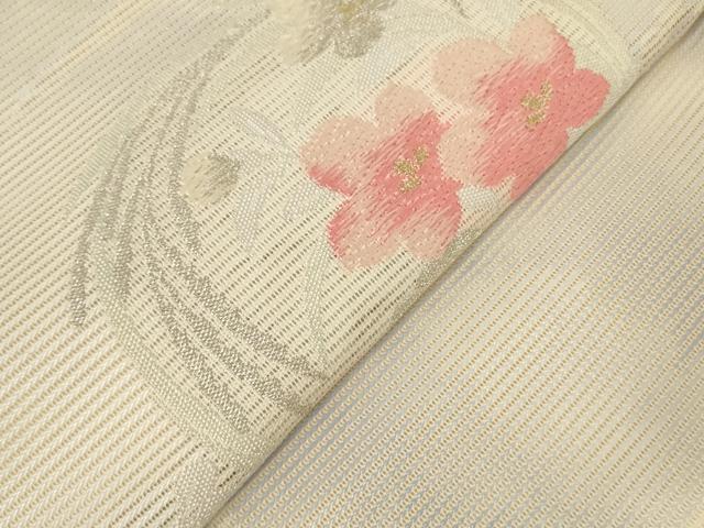 Heiwaya Kimono ▼ Summer Nishijin Nagoya Obi (Sash) - Obi Fabric with Flower and Grass Circle Design, Gold and Silver Thread, Pure Silk, Excellent Condition, Unused, AAAX2463ru