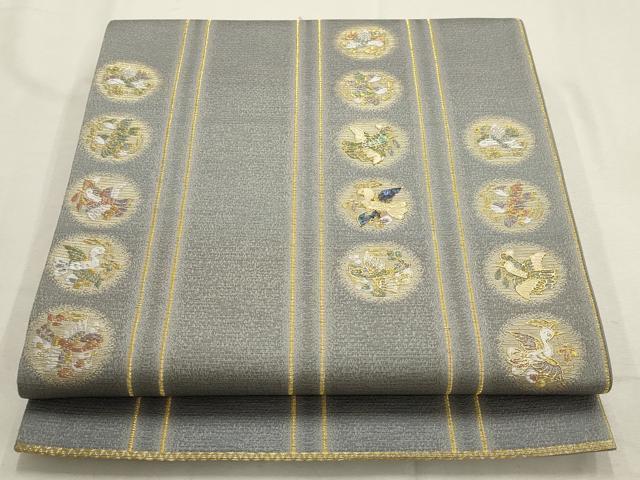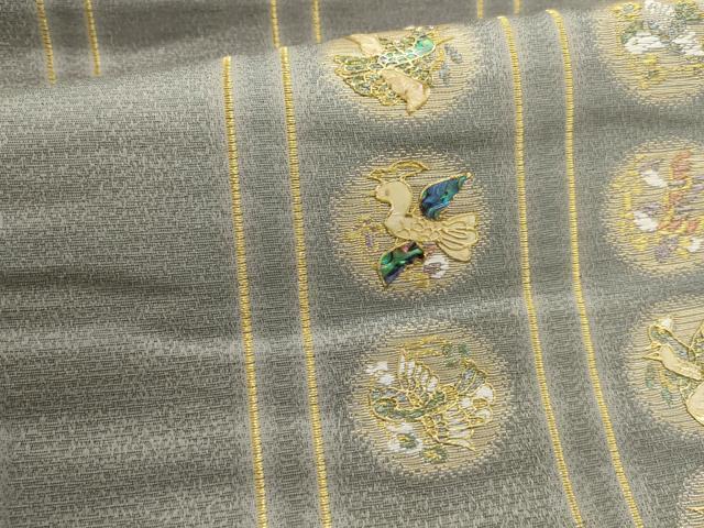 Heiwa-ya Kimono ▼ Taiko Pattern Obi (Sash), Mother-of-Pearl Inlay, Asuka Design, Gold Thread, Pure Silk, Excellent Item, AABD7777wj