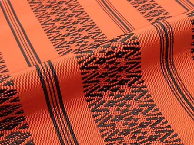 仏具のひとつである独鈷、華皿を基にした幾何学模様が織られています。