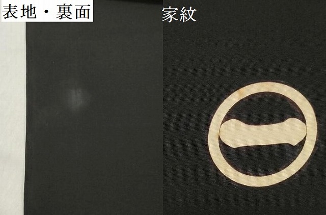 状態は接写画像のように表地所々・裏面所々・家紋に薄い汚れがございます。