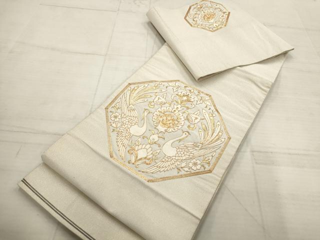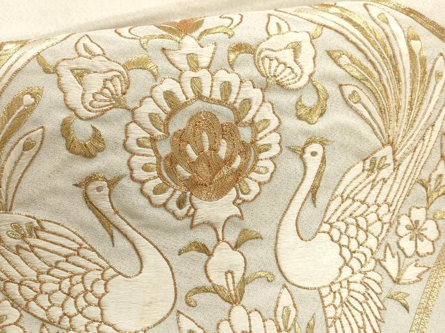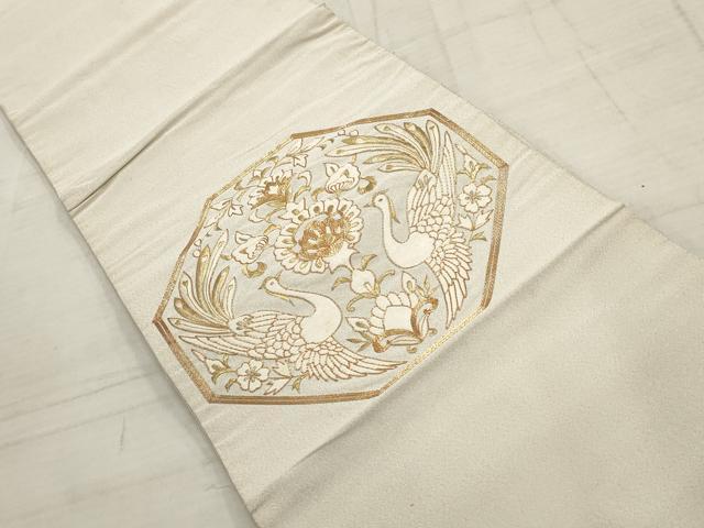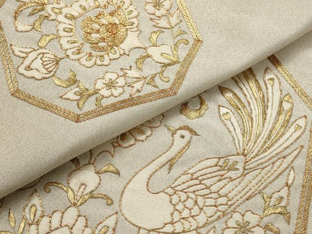 Heiwa-ya Kimono ▼ Tsumugi (woven) fully embroidered obi with tortoiseshell and flower and bird design, gold thread, pure silk, exquisite item, AABC6572wj