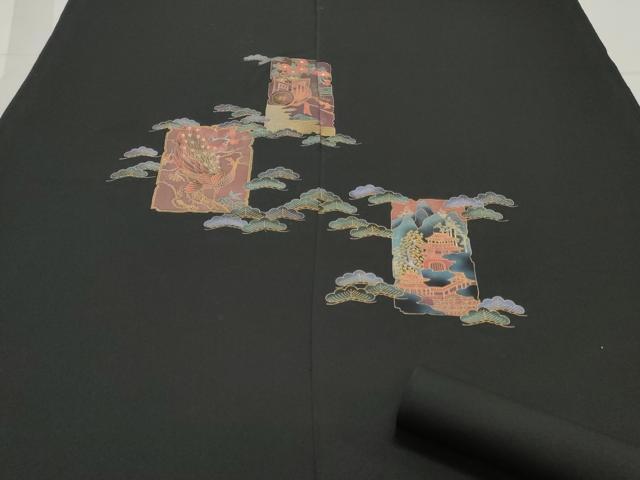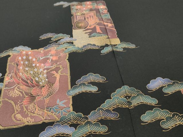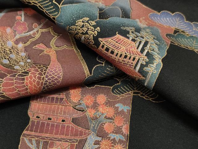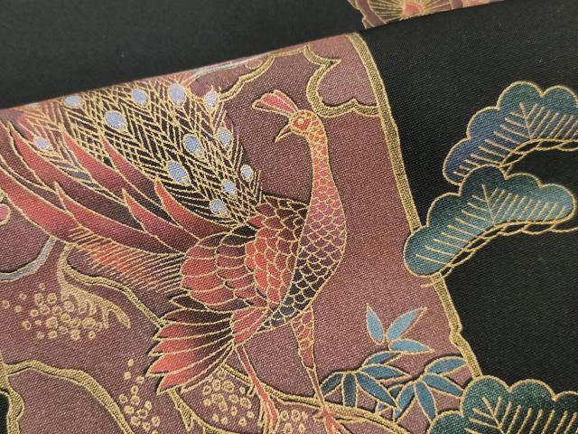 Heiwaya Kimono ▼ Haori/Coat Roll of fabric, feather scale, colored paper peacock landscape design, black background, gold coloring, retail price 280,000 yen, excellent item, unused, DAAY7033zy