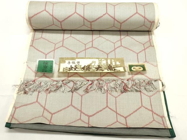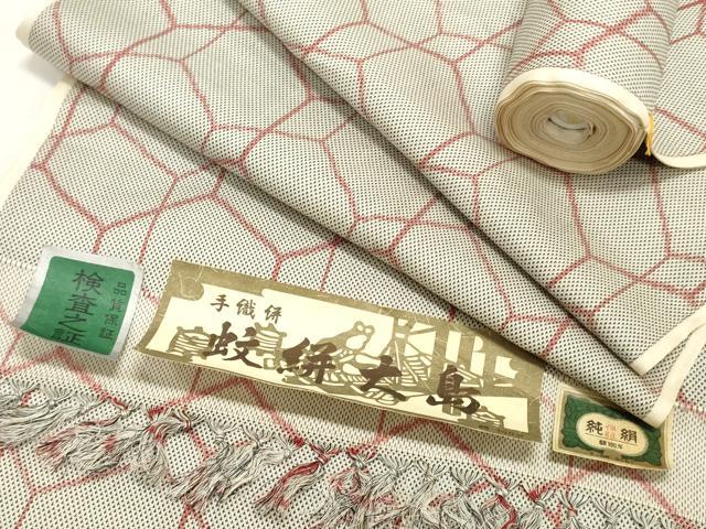 Heiwaya Kimono ▼ Mosquito Kasuri Oshima Tsumugi Fabric Roll, Kimono Fabric, Handwoven Kasuri, Tortoise Shell Pattern, with Certificate of Authenticity, Excellent Quality, Unused, DABD4816zy