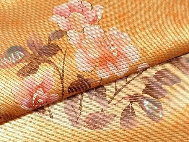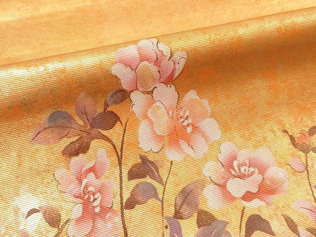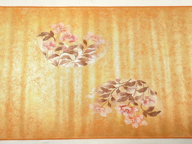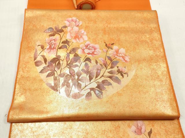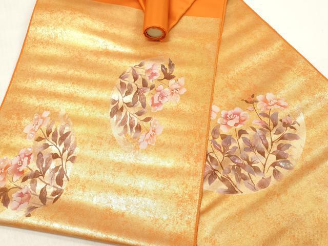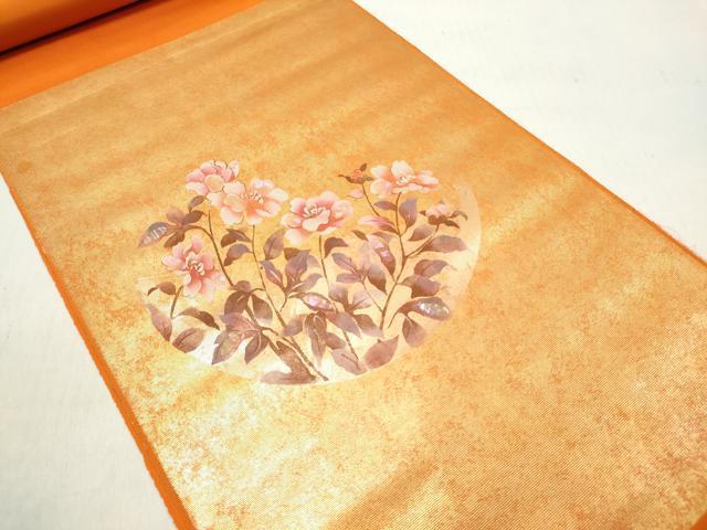 Heiwa-ya Kimono ▼ Nishijin Nagoya Obi, Obi Fabric, Artist's Work, Flower and Plant Circle Design, Mother-of-Pearl Leaf, Certificate of Authenticity, Excellent Condition, Unused, DABC7078we