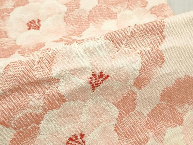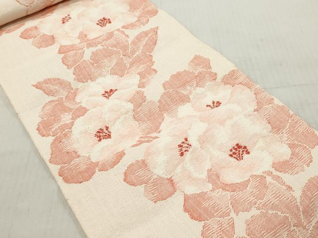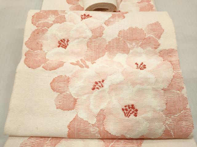 Heiwaya Kimono ▼ Nishijin Okabun Textile Co., Ltd. Nagoya Obi (sash), Obi fabric roll, Tsumugi silk, Floral pattern, with certificate of authenticity, excellent quality, unused, DABE3333we