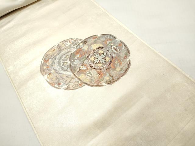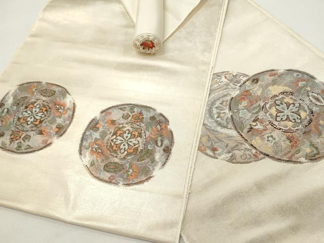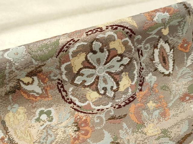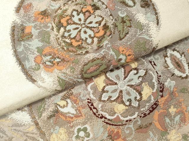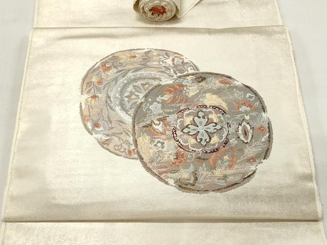 Heiwaya Kimono ▼ Nishijin Kurose Ori Nagoya Obi (Sash) with Floral Plate Design and Dried Foil, Isetan, Excellent Condition, Unused, DAAW6501we