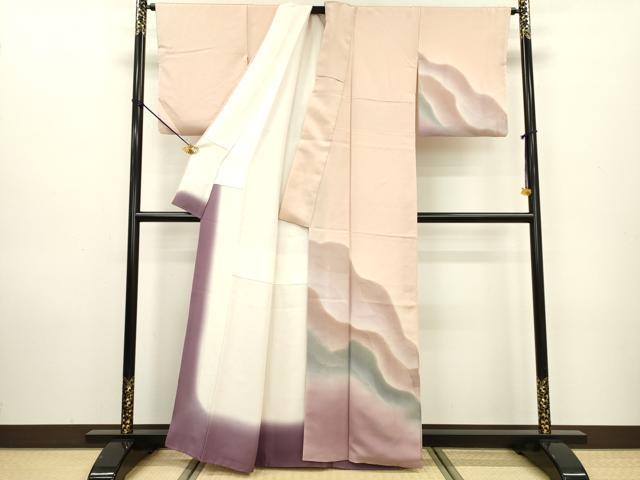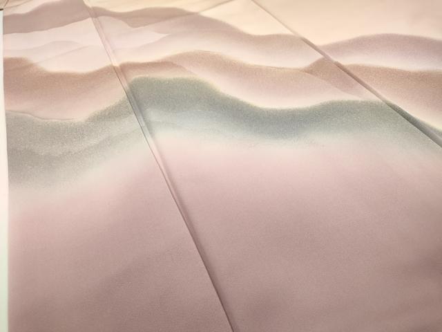Heiwa-ya Kimono ▼Homongi (Visiting Kimono) - Layered Mountains, Gradation Dye, Gold Accents, Pure Silk, Excellent Item, DAAW3430fe