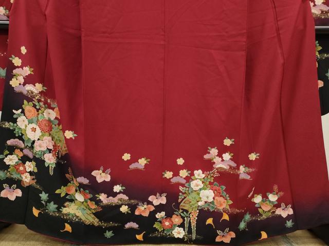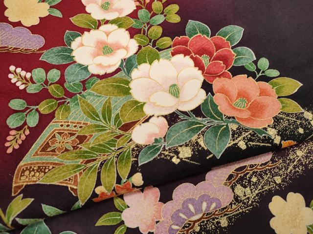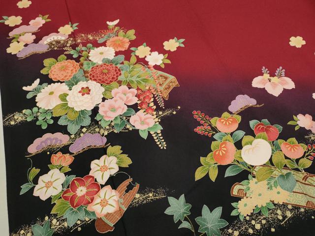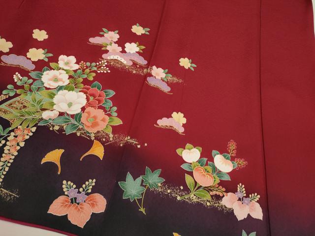 Heiwa-ya Kimono ▼Luxurious Furisode Kimono with Koto and Floral Design, Gradient Dye, Gold Accents, Pure Silk, Excellent Quality, CAAX6364ze