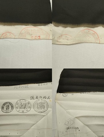 状態は接写画像のように裏面所々に糊跡、裏面所々・耳部分にヤケがございます。