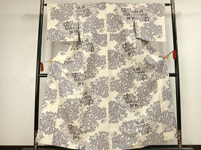 Heiwaya Kimono ▽ High-quality Tsumugi Kimono, Single-Layer, Hydrangea Design, Pure Silk, Excellent Quality, AABC4028fy