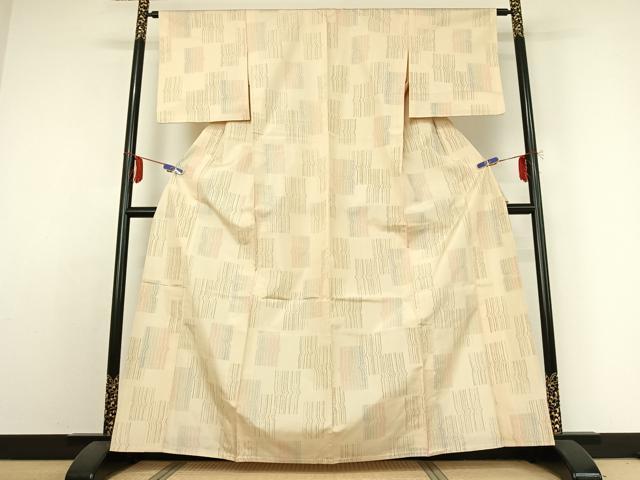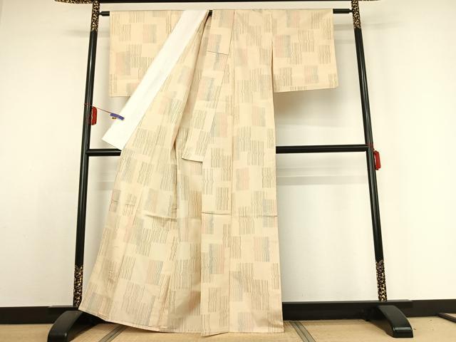 Heiwa-ya Kimono: Authentic Oshima Tsumugi Kimono, Single Layer, Geometric Pattern, Pure Silk, Excellent Quality, AABE1172jh