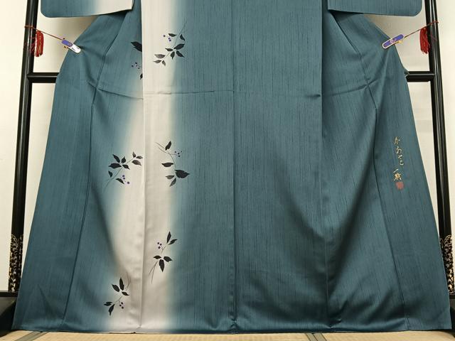 Heiwaya Kimono: Dyeing artist Ikki Kusano. A single-layered, flower-patterned formal kimono with a gradation dyeing and gold accents. A long, pure silk kimono. AABE4656jh