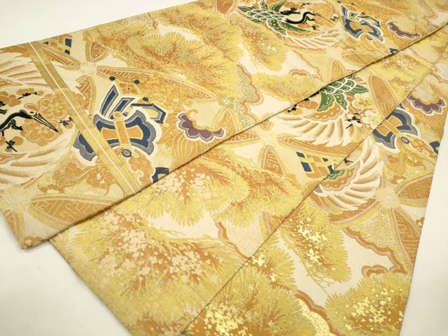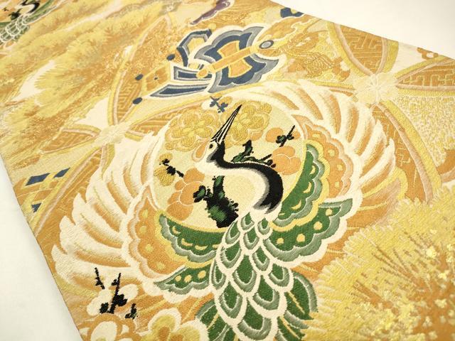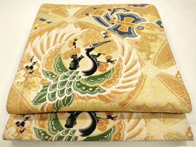 Heiwaya Kimono ◎ Antique Taisho Romantic Maru Obi with Auspicious Flower and Bird Design, Crane, Gold Thread, Pure Silk, Excellent Item CABA3818qe