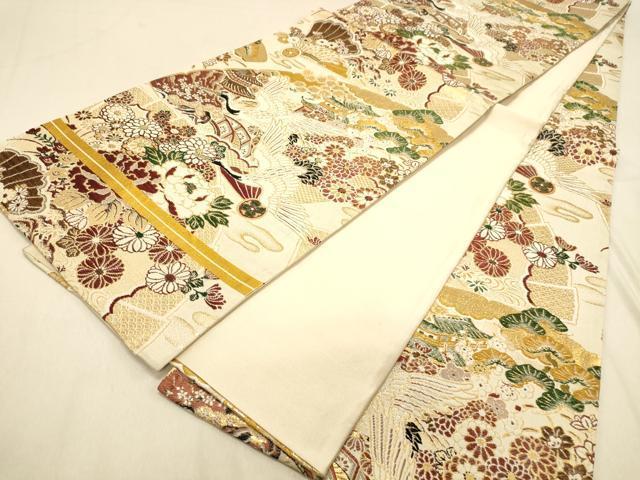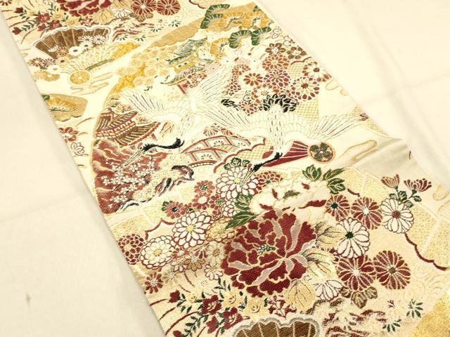 Heiwaya Kimono ◎ Antique Taisho Romantic Full-Length Obi with Flying Crane and Flower Design, Gold Thread, Pure Silk, Excellent Item, DAAX0856jm