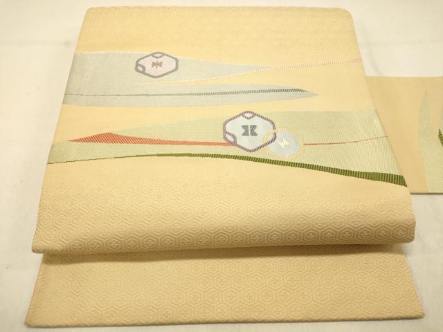 Heiwaya Kimono ◎ 9-inch Nagoya Obi (Sash) with Geometric Pattern, Pure Silk, Excellent Item, DAAX6099jm
