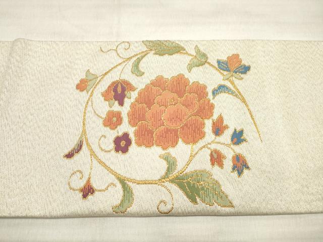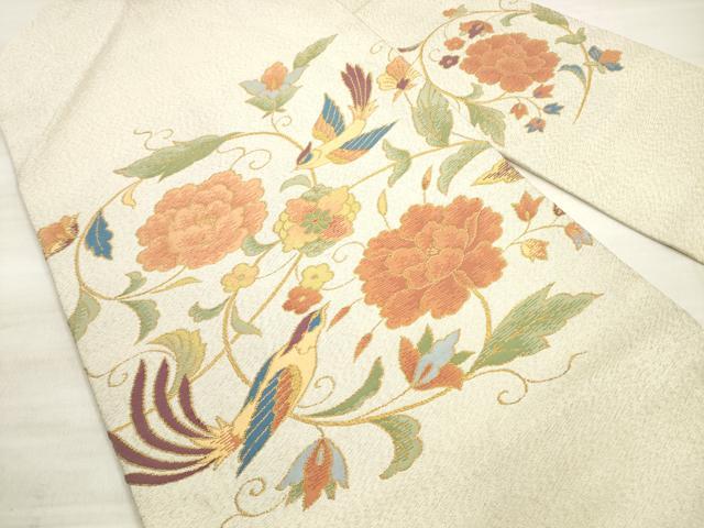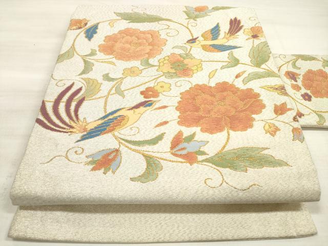 Heiwaya Kimono ◎ Nine-inch Nagoya Obi (sash) with floral and bird pattern, gold and silver threads, pure silk, exquisite item, DABE8184xg