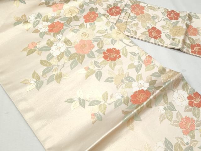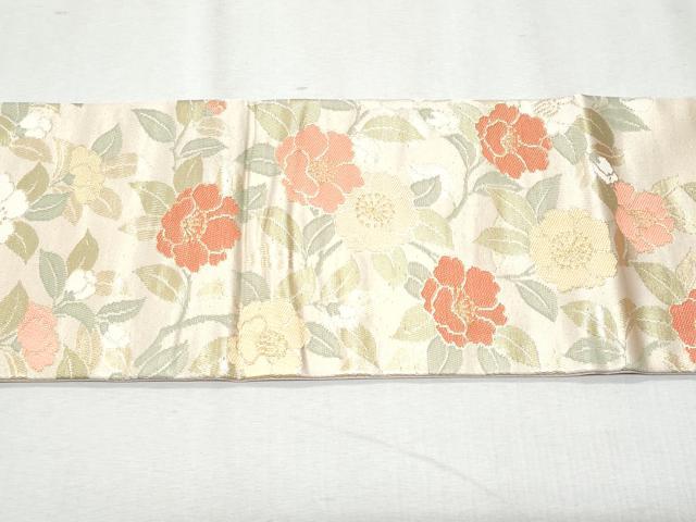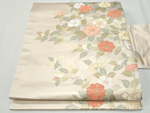 Heiwaya Kimono ◎ 9-inch Nagoya Obi with Floral Pattern, Gold Thread, Pure Silk, Excellent Quality, CAAZ4991fb