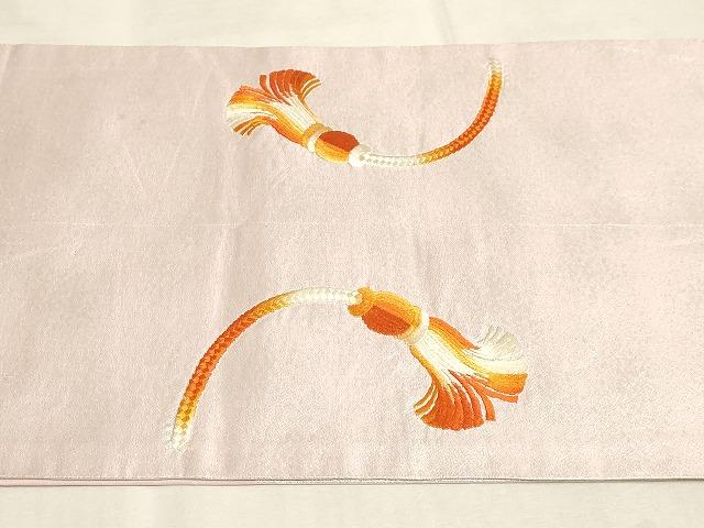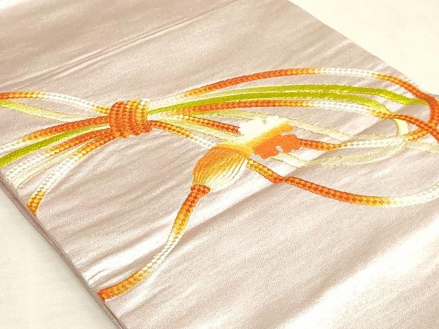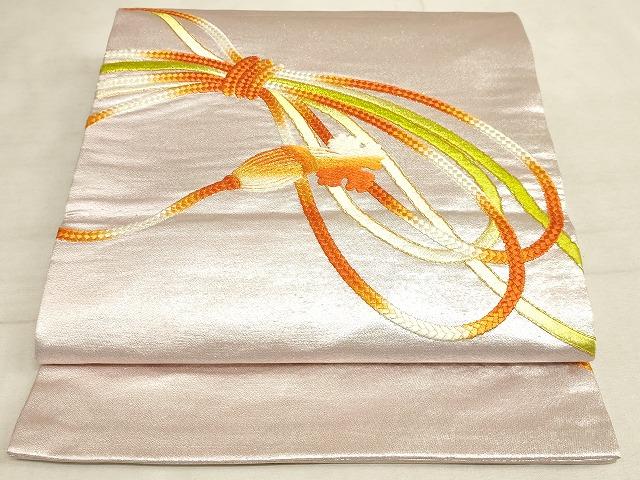 Heiwaya Kimono ◎ 9-inch open Nagoya obi, Koma embroidery, knotted string pattern, gold thread, pure silk, excellent item, AAAM3155sx