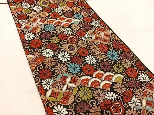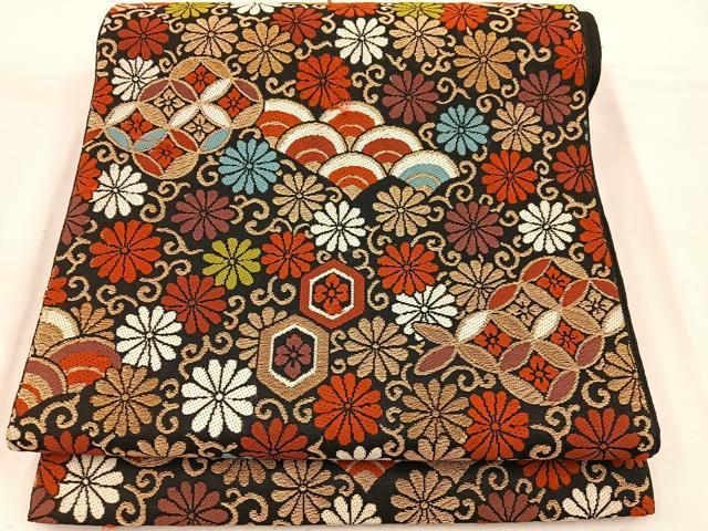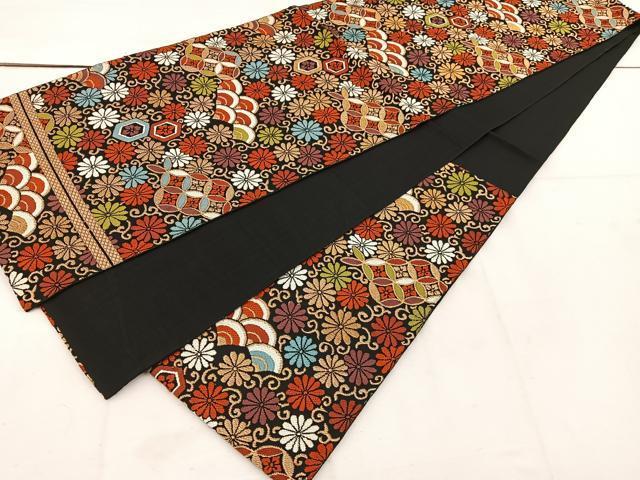 Heiwaya Kimono ◎ Six-pass pattern Kyoto bag obi, authentic bag obi with auspicious floral design, black background with gold thread, BAAV9126mz