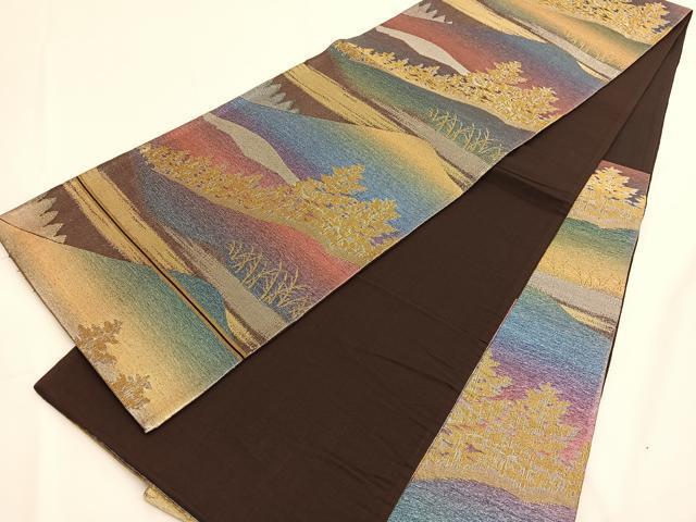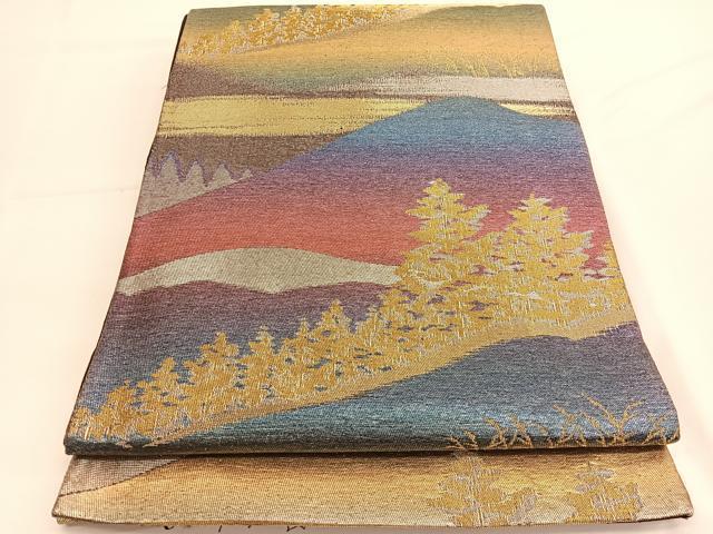 Heiwa-ya Kimono ◎ Six-pass pattern Kyoto bag obi with a distant mountain landscape design, gold and silver thread, pure silk, exquisite item BAAV9477hv