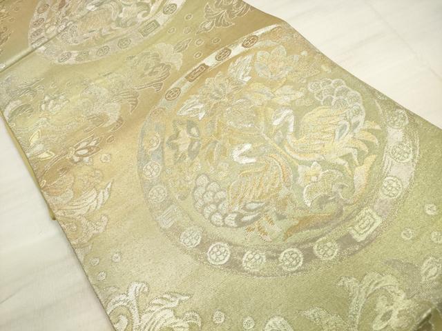 Heiwaya Kimono ◎ Six-panel patterned obi sash, facing birds, sarasa floral pattern, gold and silver thread, pure silk, exquisite item, DABE8116xg