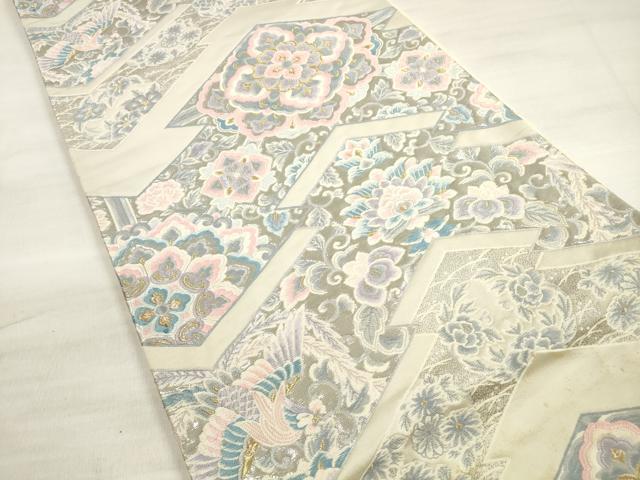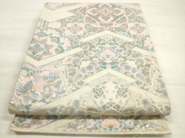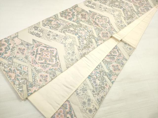 Heiwaya Kimono ◎ Six-panel patterned obi, Tang weave, pine bark diamond flower pattern, platinum foil, pure silk, exquisite item, DABE2387xg