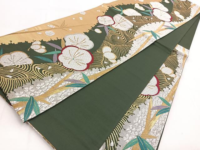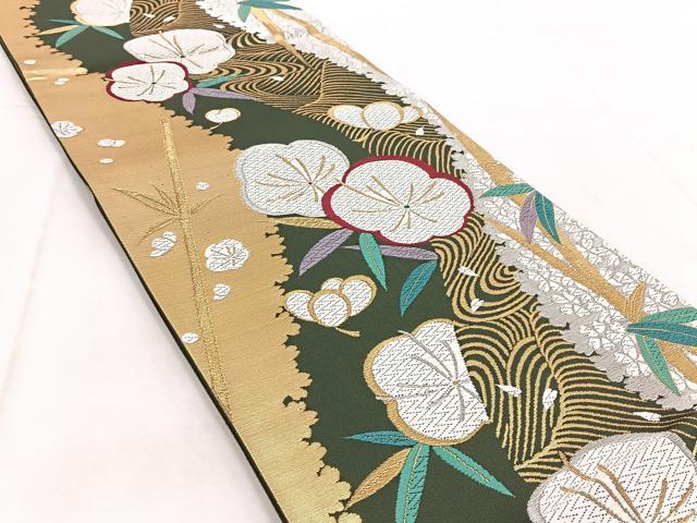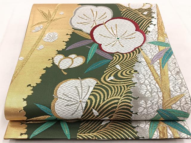 Heiwaya Kimono ◎ Six-panel patterned obi, Tang weave, flowing water, bamboo and plum blossom motif, gold and silver thread, pure silk, exquisite item BAAW8889yc