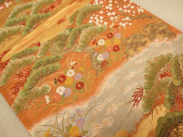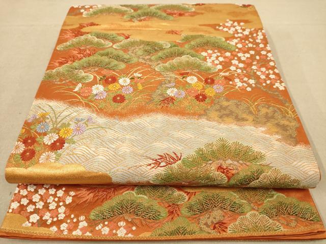 Heiwa-ya Kimono ◎ Six-pass pattern obi, Karaori, Hamamatsu, gold thread, pure silk, excellent quality, AABB4010dt