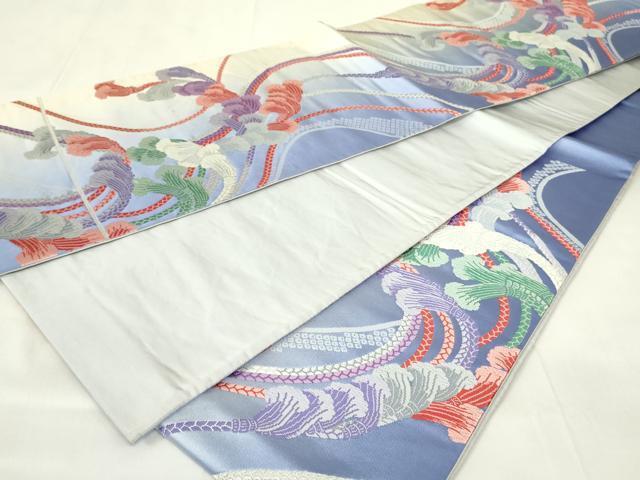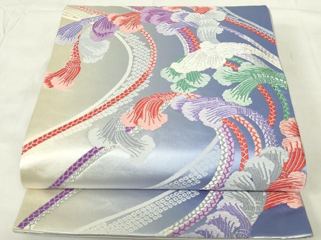 Heiwa-ya Kimono ◎ Six-pass pattern obi, Karaori weave, knotted cord pattern, silver thread, pure silk, exquisite item, DAAZ9304qp
