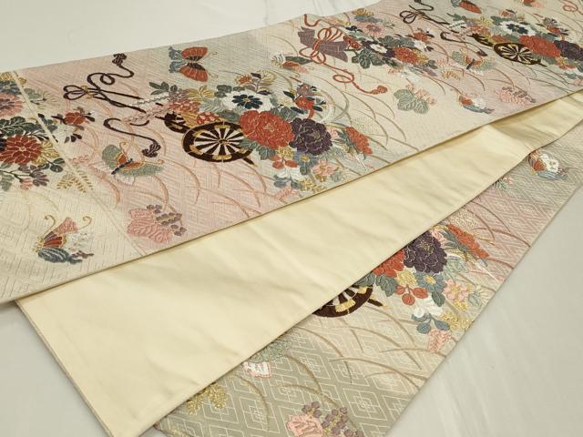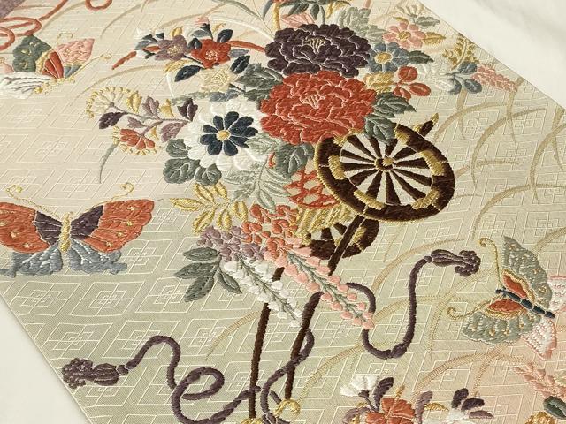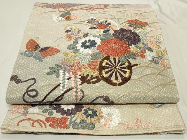 Heiwa-ya Kimono ◎ Six-pass pattern obi, Karaori weave, flower cart design, butterfly, gold thread, pure silk, exquisite item, CAAY8988in