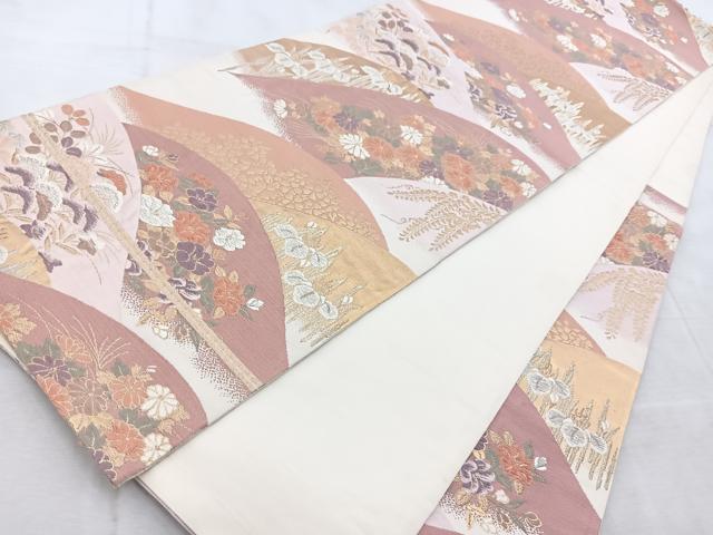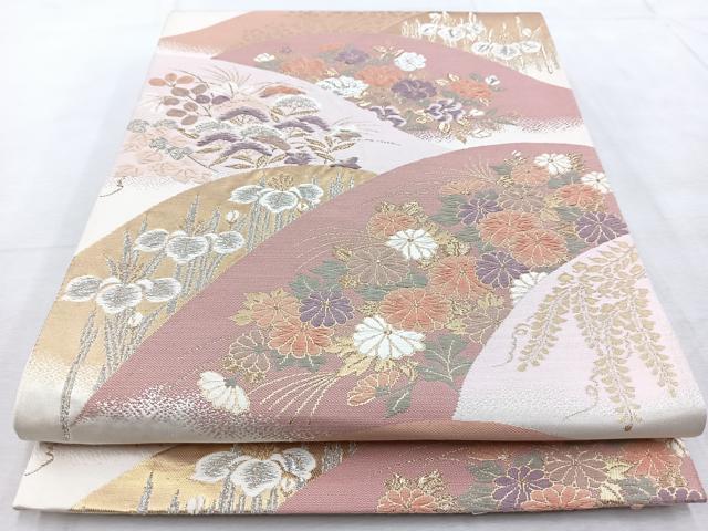 Heiwa-ya Kimono ◎ Six-pass pattern obi (sash), Karaori, floral blue ocean wave pattern, gold and silver thread, pure silk, exquisite item, BAAV4309yc