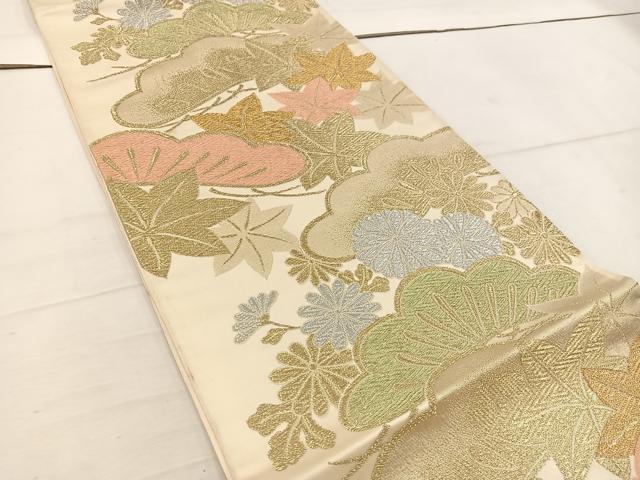 Heiwa-ya Kimono ◎ Six-way Pattern Obi, Karaori, Chrysanthemum Design, Gold and Silver Thread, BAAW1261mz