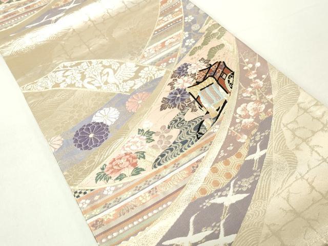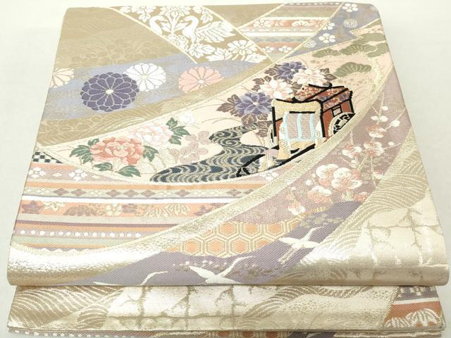 Heiwa-ya Kimono ◎ Six-pass pattern obi, Karaori, Kudzu obi with flying crane and flower design, gold thread, pure silk, exquisite item, DAAZ8965qa