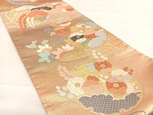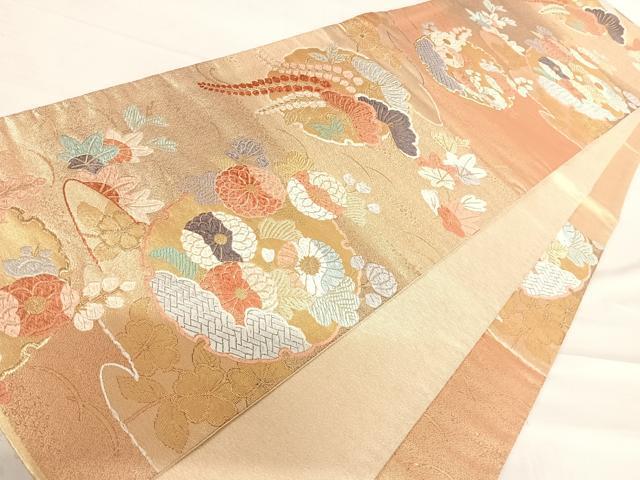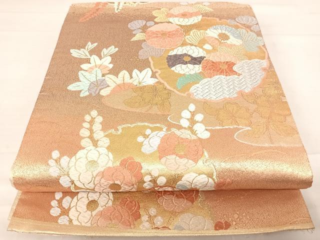 Heiwa-ya Kimono ◎ Six-pass pattern obi, Karaori weave, snow wheel and flower design, gold thread, pure silk, exquisite item AABD5757yx