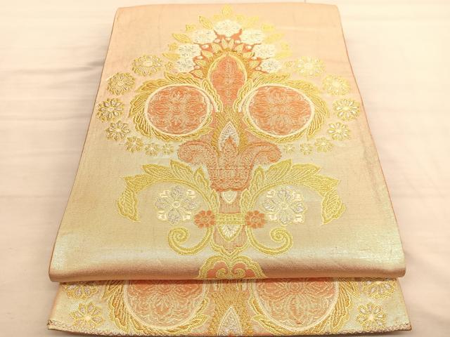 Heiwa-ya Kimono ◎ Six-pass pattern obi, Karaori weave, decorative floral design, gold and silver thread, pure silk, exquisite item BAAV3415hv