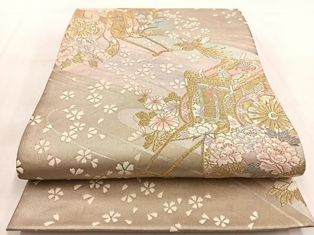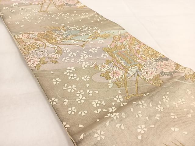 Heiwaya Kimono ◎ Six-panel patterned obi, Tang weave, Phoenix and Imperial carriage flower pattern, gold thread, handled by Suzunoya, pure silk, exquisite item, BAAW8826yc