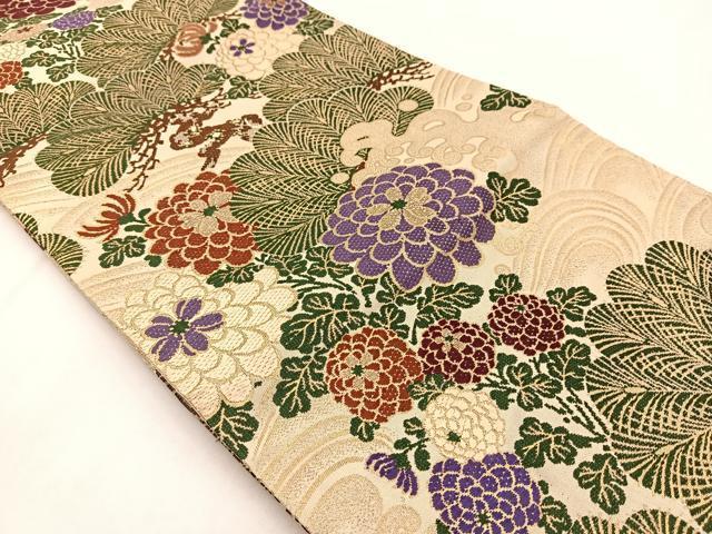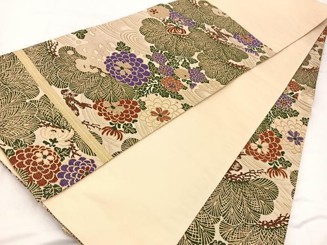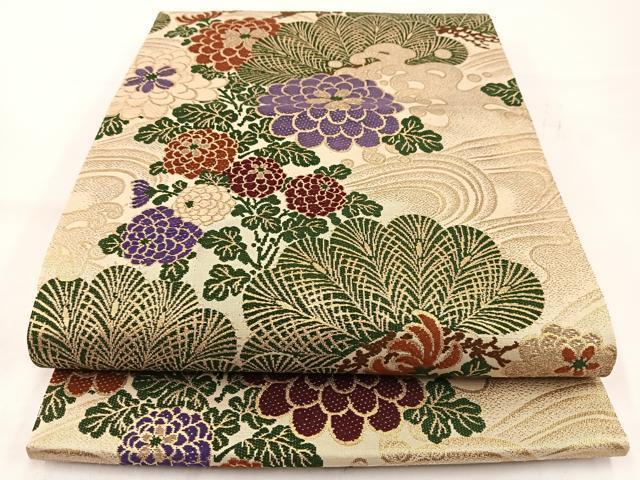 Heiwa-ya Kimono ◎ Six-pass pattern obi, pull-out obi, Karaori weave, standing wave, chrysanthemum and pine design, gold thread, pure silk, exquisite, unused, BAAV7548yc