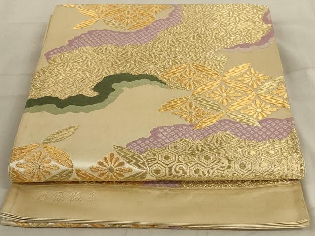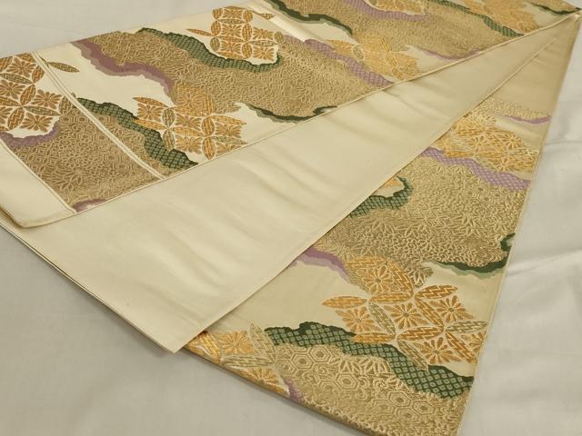 Heiwa-ya Kimono ◎ Six-pass pattern obi, embroidered satin with Michinaga Shippo floral design, gold thread, pure silk, exquisite item AABD4270ou