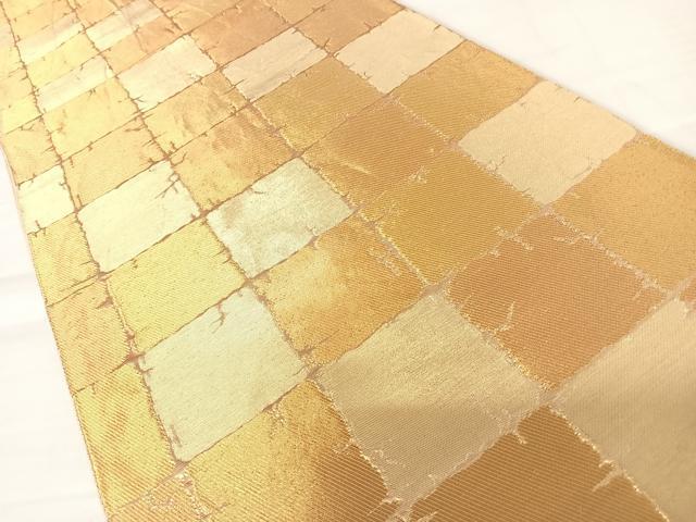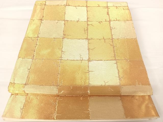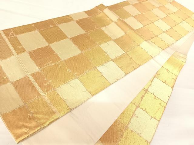 Heiwa-ya Kimono ◎ Six-way Pattern Obi, Plaid, Gold Thread, Pure Silk, Excellent Quality AABB2871yx